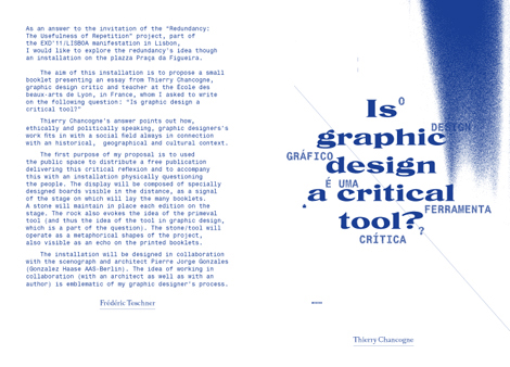 Noutras palavras, mesmo que esperemos que o espĂrito crĂtico das nossas imaginaçÔes se possa reflectir nas nossas realidades vividas, o design grĂĄfico sĂł pode servir como uma ferramenta crĂtica, quando se tornar num design grĂĄfico crĂtico.