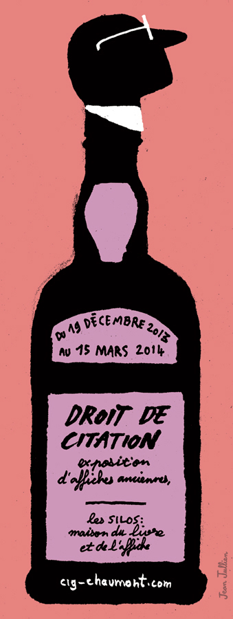 Droit de citation est nĂ© ainsi, une façon d’affronter les regards prĂ©-informĂ©s sur ce que sont ces affiches, sur la domination de l’affiche culturelle, sur le dogme naissant de ce que devrait ĂŞtre un rapport au public. Prenons sept affiches de rĂ©clames publicitaires issues de ce fonds, reprĂ©sentatives des sujets qui y sont traitĂ©s et des affichistes qui y sont reprĂ©sentĂ©s et, Ă fin de mĂ©diation, invitons Ă rĂ©agir d’une part sur ces sujets, d’autres part sur ces « images », sept graphistes contemporains français et internationaux, choisi parfois pour leur rapport anecdotique avec tel ou tel sujet (l’Atelier de crĂ©ation signait dans les annĂ©es 1990 la communication de la gamme de papier Job Parilux, Mathias Schweizer n’a laissĂ© personne indiffĂ©rent en 2007 avec son affiche Chocomont) ou pour leur approche du design graphique et des formes. Chacun Ă reçu afin d’y rĂ©agir graphiquement et dans le mĂŞme format que les originaux : l’information textuelle d’une première affiche, le fichier numĂ©rique d’une seconde. En ressortent 2 x 7 impressions, sĂ©rigraphiĂ©es chacune en tirage limitĂ©. En quelque sorte des documents de mĂ©diation produits avec suffisamment de soin pour possĂ©der leur valeur propre et intĂ©grer Ă leur tour les collections qu’ils commentent.