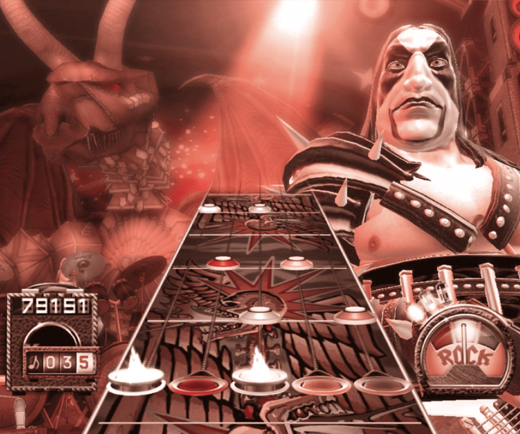 Guitar Hero en est l’exemple le plus représentatif. À l’écran s’affichent cinq colonnes figurant les notes ou accords de notes qu’il faudra reproduire à l’aide de l’instrument qui repose entre les mains du joueur: une réplique en plastique d’une guitare Gibson comprenant cinq boutons de couleur sur le manche et un levier en guise de cordes sur le corps. La règle du jeu est simple: la partition, ou plutôt ce qui ressemble plus à une tablature, défile en même temps que la chanson. Quand un point coloré arrive sur la barre de lecture, alors il faut jouer la note qui correspond sur la guitare, sinon, c’est la fausse note.