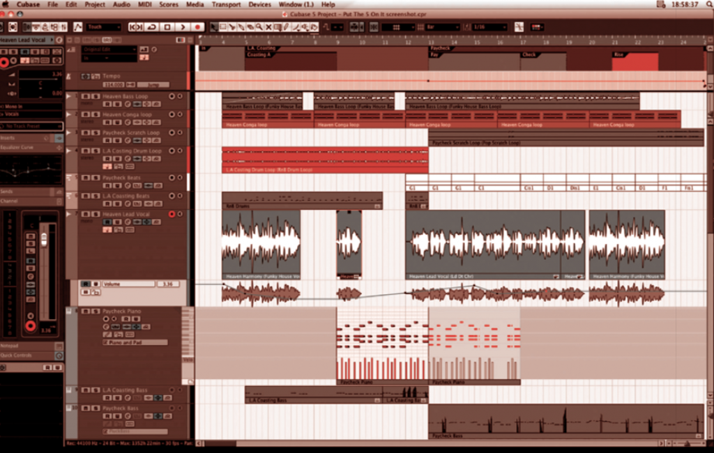 La MAO (musique assistée par ordinateur) va par la suite s’emparer du modèle de la track sheet jusqu’à en devenir un revival augmenté. L’analogique laisse progressivement place au «tout numérique» à partir des années 1990. Désormais, l’ordinateur centralise toutes les taches. La musique se manipule de manière informatique: l’enregistrement passe par des tables de mixage numériques, elle est ensuite stockée numériquement et le mixage est orchestré sur les logiciels de M AO à l ’image de Cubase ou Protools pour ne citer qu’eux. C’est donc à ce dernier endroit que tout devient visible. C’est tout naturellement que la track sheet va servir de modèle à la création de l’interface graphique de ces applications. Et tout y est présent. Le principe des blocs est conservé, les couleurs sont utilisables à loisir. De plus, la fonction mémorielle est décuplée: à chaque élément sont rattachées des informations propres ( présets, effets ). Il suffit de cliquer et modifier, écrire n’est plus qu’un lointain souvenir. Et comme deux révolutions valent mieux qu’une, la MAO permet en même temps d’associer l’exploitation du MIDI, dans lequel on retrouve le principe de tablature hybride. Là encore, rien de nouveau, mais tout devient lisible sur le même plan. Produire la musique pour celui qui ne sait pas lire une partition n’a jamais été plus simple qu’aujourd’hui.