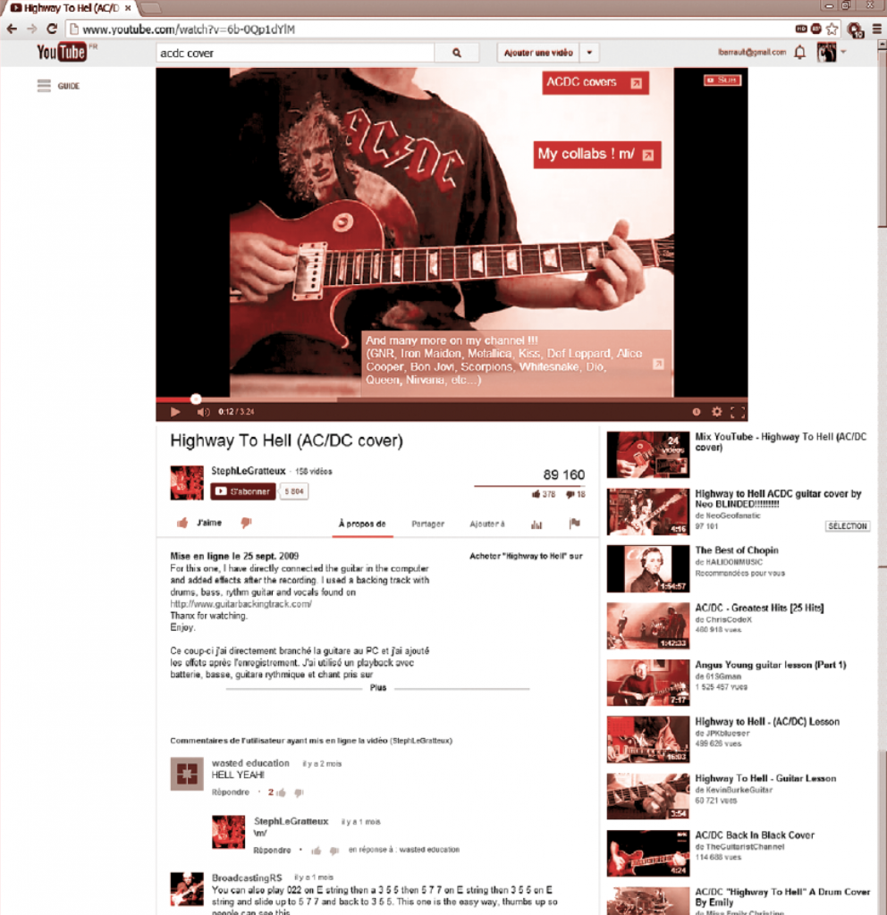 Sur Youtube, l’archétype d’une cover avec son cadrage sur les mains accompagné de commentaires sur la même page.