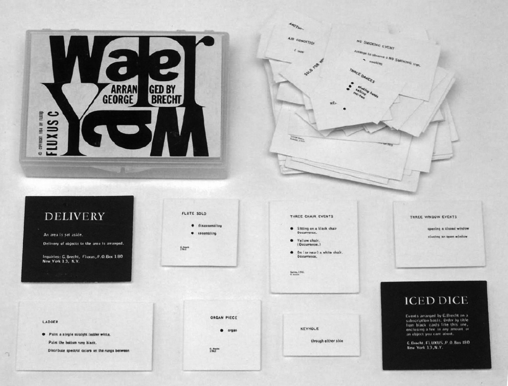 George Bretch édite les partitions de Water Yam sous forme d’une série de cartes typographiées réunies dans une petite boîte.