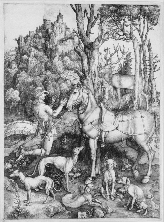Saint Eustache ou Saint Hubert, Albrecht Dürer, burin, 1501, collection des arts graphiques, musée du Louvre