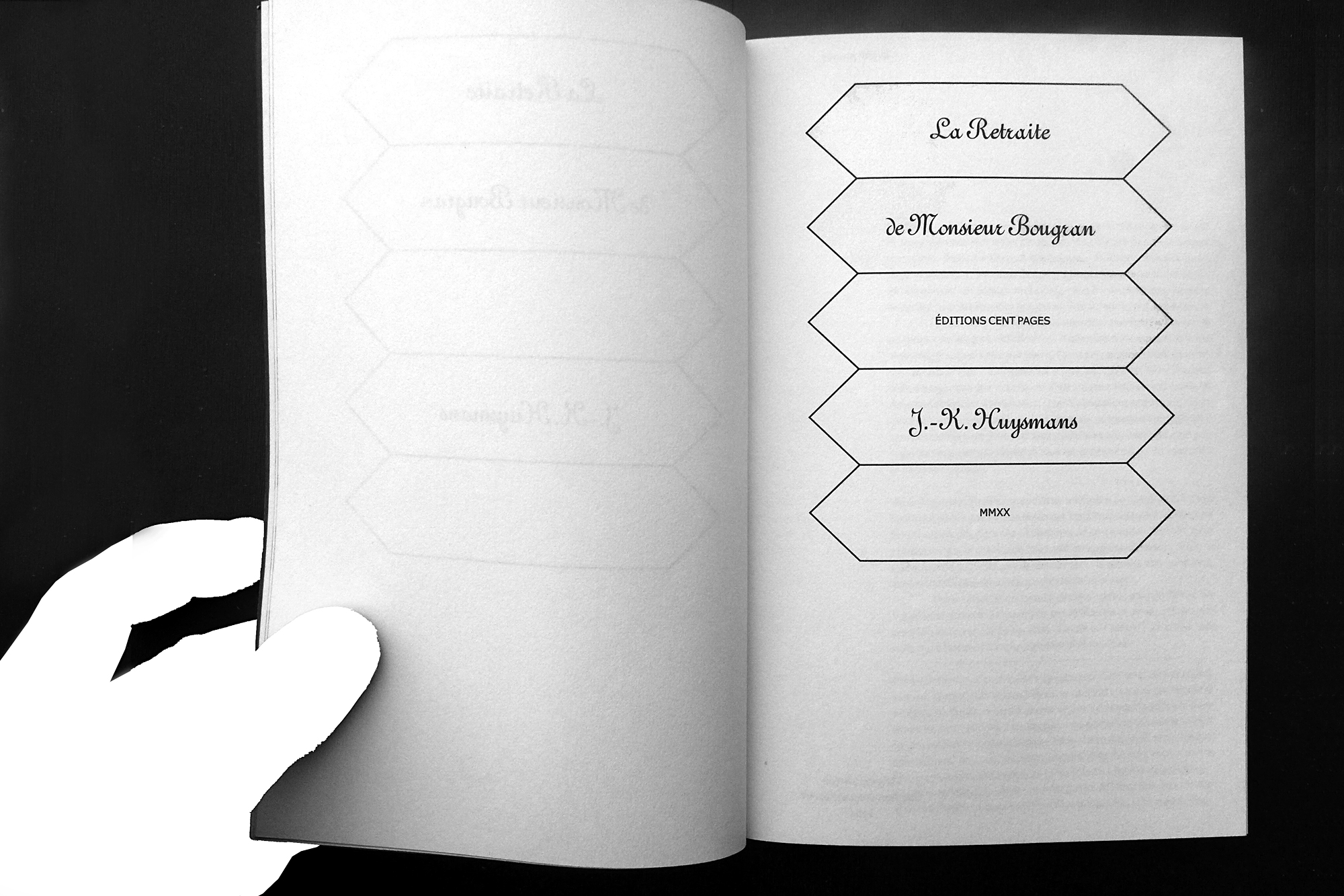 J.-K. H. le translucide, p. 1, de l’exemplaire N°1, «La Retraite de Monsieur Bougran», éditions CENT PAGES, 2020