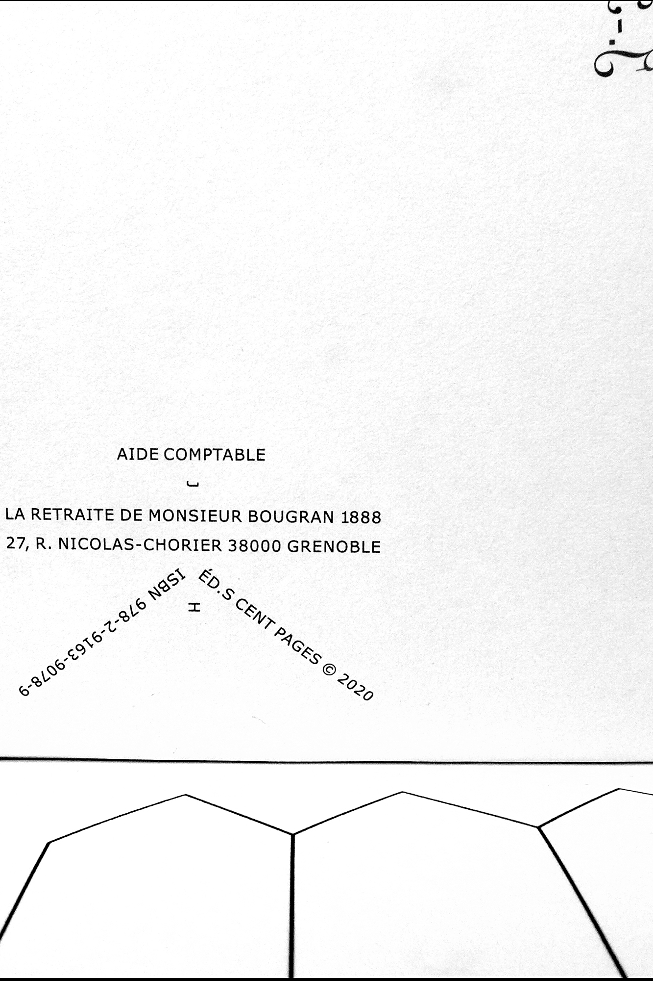 quatrième de couverture, de l’exemplaire N°1, «La Retraite de Monsieur Bougran», éditions CENT PAGES, 2020