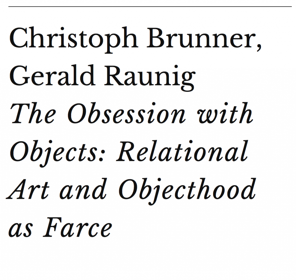 Christoph Brunner, Gerald Raunig, «The Obsession with Objects: Relational Art and Objecthood as Farce» in Open!, 2013