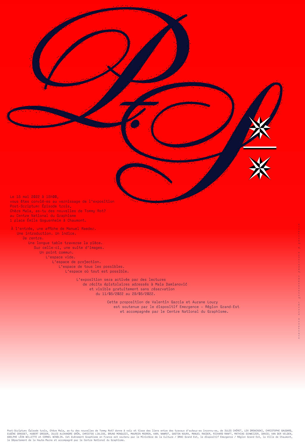 Pas de commentaires Aurane Loury, Valentin Garcia, Post-scriptum : « Chère Maia, as-tu des nouvelles de Tommy Rot ? », par Thierry Chancogne Laisser un commentaire Annuler la réponse. Votre adresse de messagerie ne sera pas publiée. Les champs obligatoires sont indiqués avec * Nom * Adresse de contact * Site web Veuillez recopier les caractères ci-dessus. Commentaire Vous pouvez utiliser ces balises et attributs HTML : <a href="" title=""> <abbr title=""> <acronym title=""> <b> <blockquote cite=""> <cite> <code> <del datetime=""> <em> <i> <q cite=""> <s> <strike> <strong> https://www.centrenationaldugraphisme.fr/le-signehttps://auraneloury.hotglue.me/ 06 / 05 / 22
