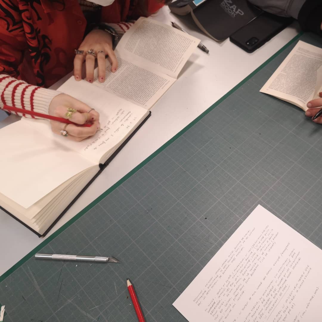 L’idée de ce moment de lecture est née suite à la présentation (lors de la réunion annuelle des bibliothécaires d’école d’art), par Aurélie Maudet, assistante en bibliothèque, de séances d’arpentages proposées à la bibliothèque de l’Eesab de Rennes par Isabelle Jego et Kristina Solomoukha.