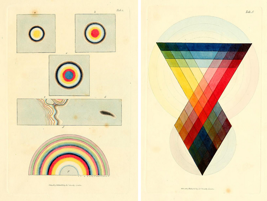 Two plates from James Sowerby’s A New Elucidation of Colours, Original, Prismatic, and Material (1809) http://publicdomainreview.org/collections/colour-wheels-charts-and-tables-through-history/