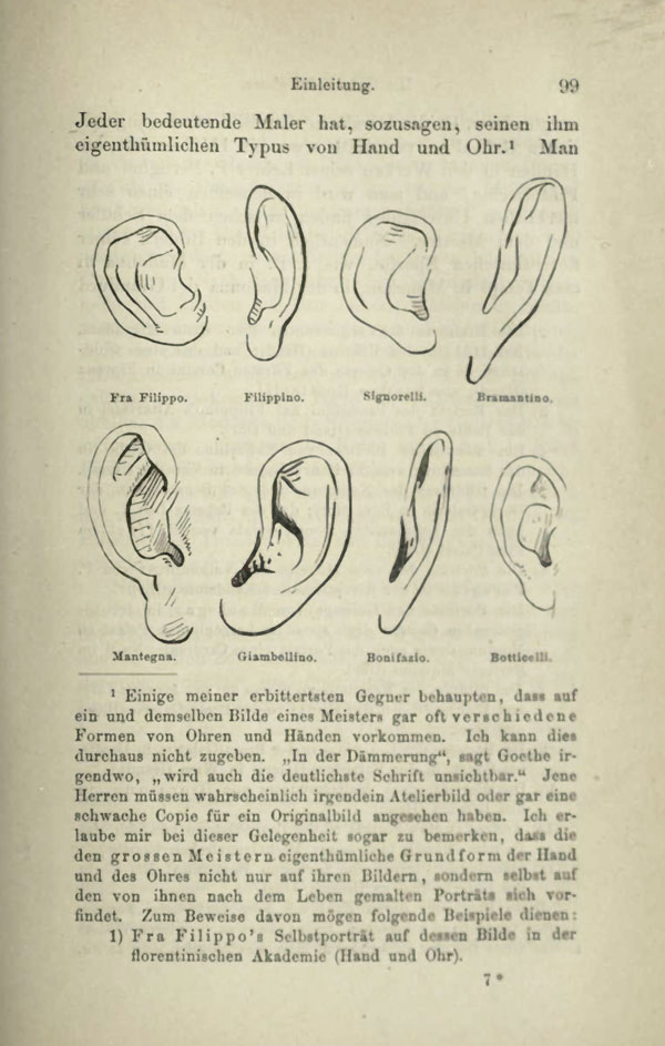 Giovanni Morelli, Dessins d’oreilles caractéristiques des artistes de la Renaissance,