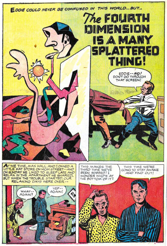 Alarming Tales #1 (September 1957) “The Fourth Dimension Is A Many Splattered Thing”, pencils and inks by Jack Kirby