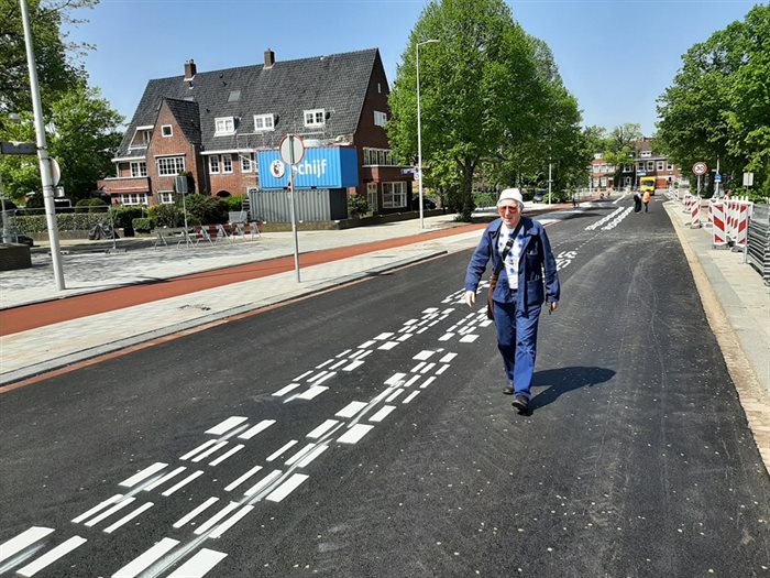 Amsterdam a demandé au graphiste Karel Martens (85 ans) de concevoir un motif pour rendre visuellement les routes plus étroites à 30 km/h afin de réduire la vitesse.