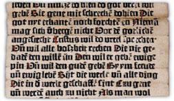 “The early printed examples consist of a fragment of a leaf from what must have been a sizable volume of sibylline poems, and parts of three different editions of Donatus’ little grammar. None of these bears a printer’s name or date, but by comparisons of type and correlation with the information given by documents they have been attributed to Johann Gutenberg at a period when he was experimenting with printing in Strassburg”