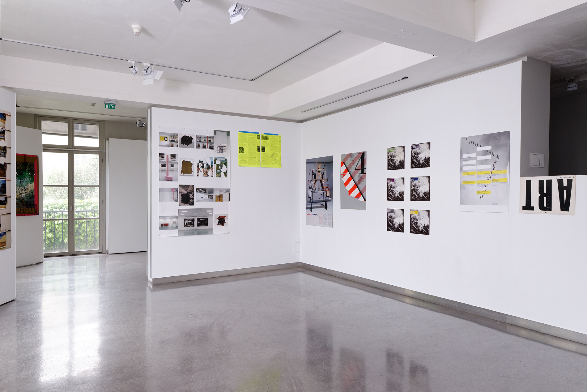J’ai fini par comprendre qu’elles n’avaient pas leur place dans l’exposition tandis qu’avec Sacha Léopold et François Havegeer nous entamions à notre tour un travail sur la trame: quatre posters recto verso réalisés à partir des photographies des espaces de la MABA par Aurélien Mole. Le projet de Weingart n’est pas à l’origine de ce projet (en fait plus ancien que l’exposition) mais il l’a enrichi. Il y a énormément à dire sur ces quatre posters. Sur leurs statuts (œuvre, décor, expérience, fond de tarte…). À eux seuls, ils vous déjouent sur la jeune génération et sur la domination de la commande (à moins qu’ils ne soient des objets de commandes).