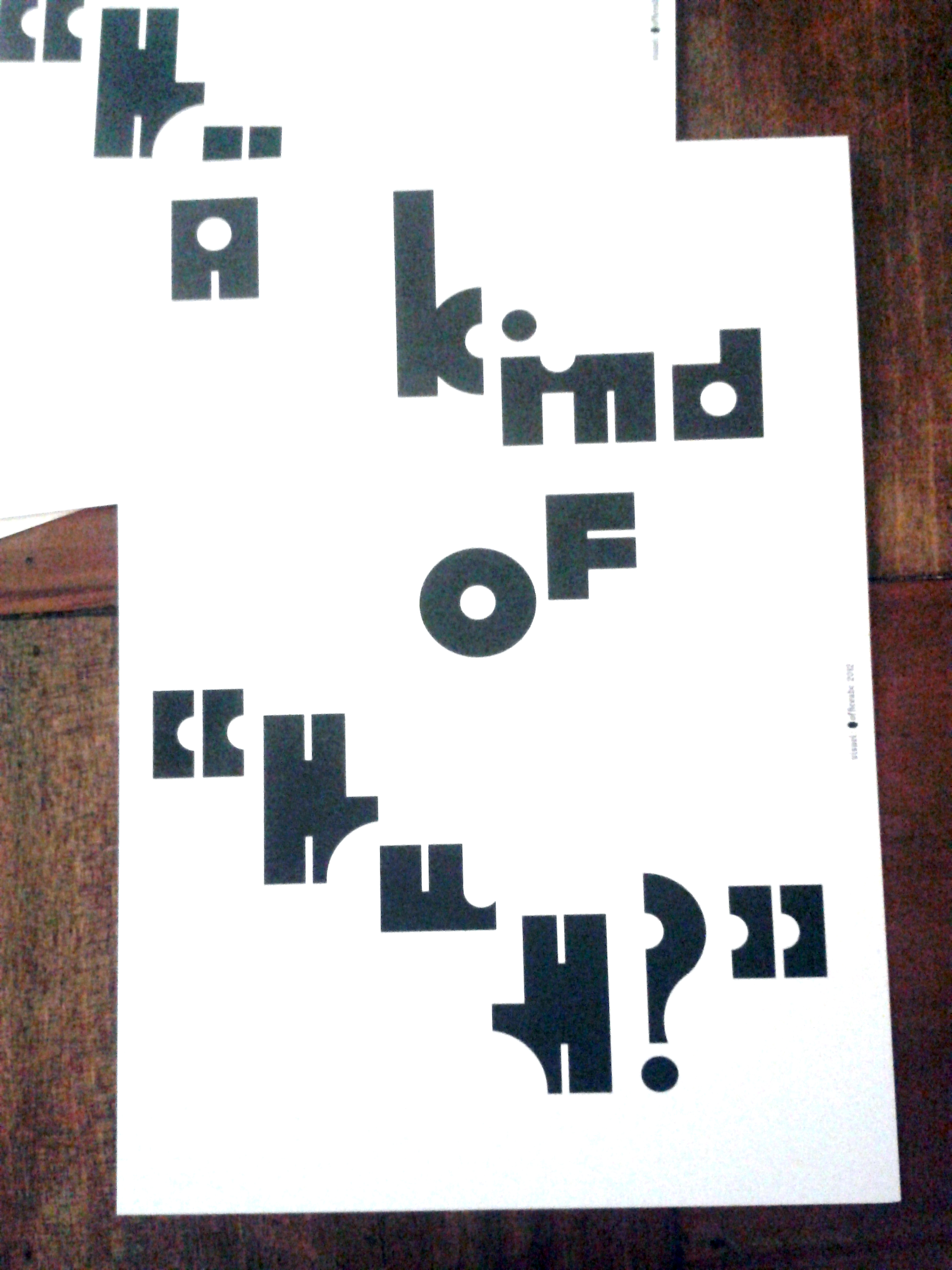 carton pour l’exposition A Kind of «Huh?» de Jérôme Dupeyrat et Maïwenn Walter aux Abattoirs – Médiathèque de Toulouse (graphisme: officeabc)