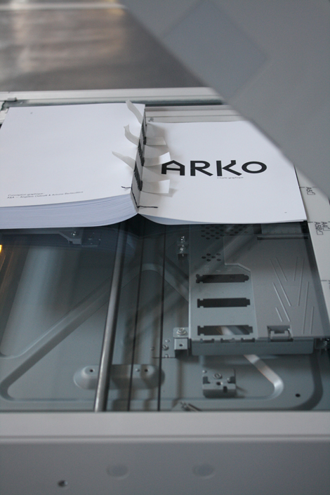 Dans le cadre de leur proposition d’identité visuelle pour la petite galerie neversoise Arko, Antoine Bertaudière et Angeline Ostinelli ont quelque peu étendu, pour répondre au budget ténu de ce modeste espace d’exposition, le « domaine de la charte graphique ». Celle-ci est devenue non plus simplement la garante des lois de l’identité visuelle, mais l’outil même de sa production.