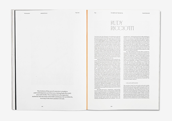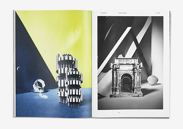 The visuals are rooted not only in the collective surrealist imagery and influenced by modernist architecture, but draw also from a formal research and experimentation with perception, with the phenomenon of optical illusion – playing with shapes and scales.The radical choice of an issue mainly in black and white with few but strong color interventions, was intended to accentuate this contrast between the dreamy qualities of Reverie and the rough aspects of Industry. It was also a means for us to try out new printing techniques, which would replicate the depth of a charcoal drawing.