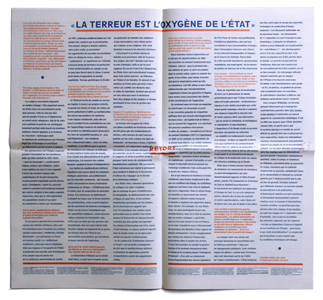 Une forme dâengagement qui nâoublie pas que le texte ne suffit pas et que, peut ĂȘtre loin de ces poĂštes militaires Ă moustaches que dĂ©criait Baudelaire, la responsabilitĂ© du graphiste est avant tout engagĂ©e dans le travail des formes. Des formes peut ĂȘtre capables de donner envie dâĂȘtre un peu plus libres, autonomes et inventifs.