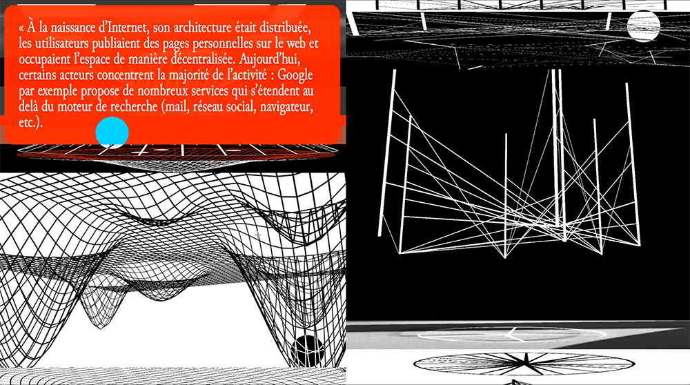 Blockchain, une architecture du contrĂ´le est un article vidĂ©o qui Ă©tudie les enjeux socio-politiques de la blockchain par une analyse spatiale. Les reprĂ©sentations de l’espace d’Internet et de la blockchain agencĂ©es en diptyque, engage un dialogue entre ces deux architectures du contrĂ´le.