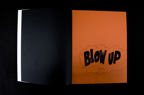 Le travail éditorial se structure sur les modes opératoires liés à l’analyse sémantique du titre du film. Blow Up désigne à la fois l’agrandissement en photographie (blowing up) mais il signifie aussi l’action d’exploser, d’éclater (to blow up).