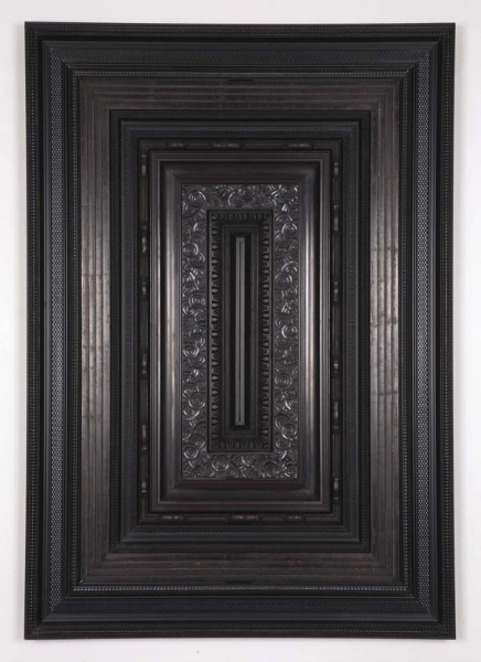 Selon Jacques Aumont, le cadre qui définit le bord, la limite matérielle et immatérielle de la surface de l’image est parfois (et massivement dans le cas de la peinture traditionnelle) doublé d’un objet qui vient renforcer cette séparation du champ de l’image à l’espace du vaste monde. Le cadre en tant que frontière qu’il appelle cadre-limite est donc relayé dans ses fonctions par un cadre-objet. Fonction perceptive purement visuelle de séparation et de passage progressif du dedans au dehors de l’image (ou l’inverse) manifeste dans l’enchâssement des cadres de l’intensité de l’image à la dilatation du monde. Fonction symbolique d’index de vision qui désigne l’image comme une portion du champ visuel de à considérer en conséquence. En conséquence de son intérêt, de sa et de ses valeurs. Mais parfois il arrive, comme dans la série proposée par Kolkoz à la galerie Emmanuel Perrotin que cadre-limite et cadre-objet se confondent à des fins rhétoriques…