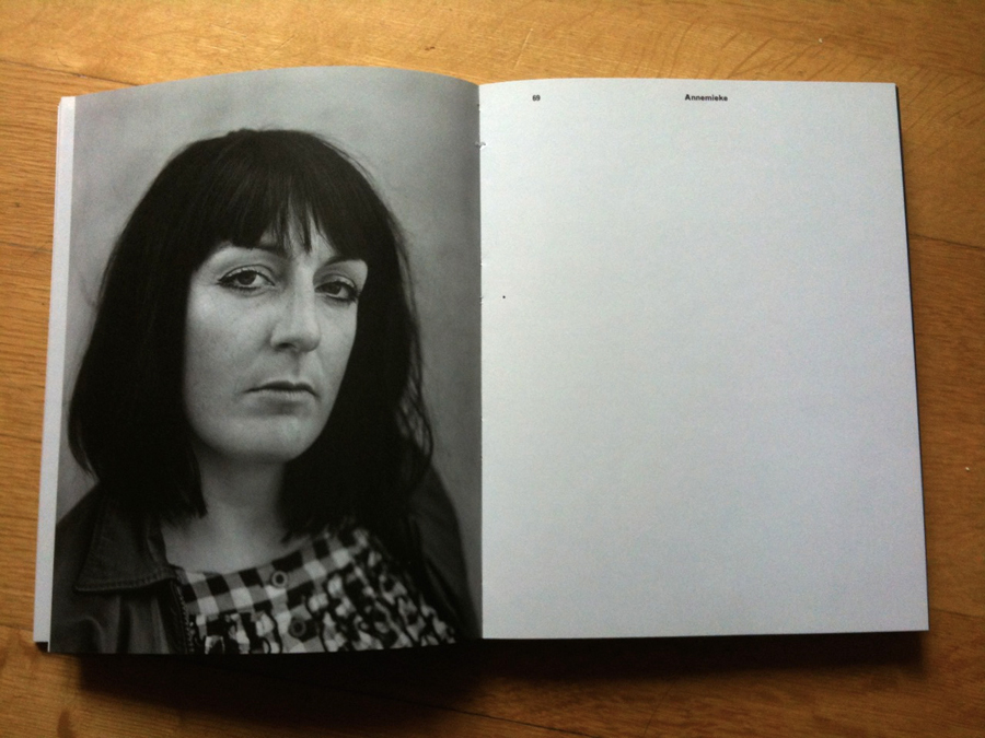 City people titre sur l’intemporel et l’universel. Le livre égrène des portraits d’habitants d’Amsterdam réalisés par Ringel Goslinga vers 2011. Le nom du photographe apparaît discrètement, en haut de la première double page, dans la même police de caractères et dans le même corps que l’ensemble des informateurs de pages (légendes, folios, titres courants…) ou que les informations de publication : « Edition :600», « imprimeur :Drukkerij Wilco», « graphiste : Hans Gremmen»2 : « Editeur : Roma Publications », ou encore que le prénom des photographiés, relativisant ainsi toute marque d’autorité.
