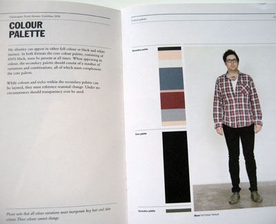 Après Benoît Lemoine et son questionnement du corps typographique, le graphiste australien Chris Doyle se demande « comment son identité personnelle serait documentée si elle était considérée en termes de charte graphique ».