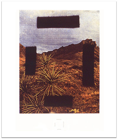 Mais, si l’on en vient à vider le texte de sa substance signifiante comme dans le cas des Blank signs ou des rétentions textuelles des séries d’Ed Ruscha des années 2000, on passe de l’herméneutique, l’art d’Hermès, messager et interprète des dieux, à l’hermétique. Une hermétique rhétorique de l’ordre de la réticence. Une hermétique paradoxale qui n’engagerait pas de perte mais qui développerait au contraire le potentiel de la signification de l’image…