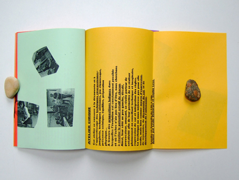 Elle a mis en place au travers d’une pratique d’atelier avec les intéressés, une boite à outils et un protocole par simple photocopie noir et blanc qui permette à ces espaces d’expression et d’émotion, de se doter d’une identité visuelle vivante, économe et autonome…