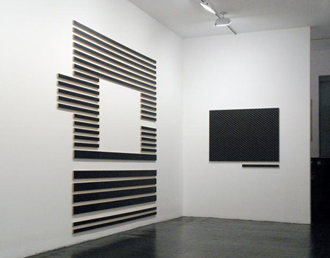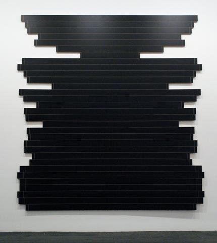 Daniel Lefcourt produit des sculptures souvent murales qui citent la structure de la composition typographique, le gris, les rythmes, les bloc texte, les habillages… et semblent agir au croisement du minimalisme formaliste d’un Sol LeWitt ou des black paintings d’un Frank Stella et des énoncés passifs de Lawrence Weiner. Mais quand ce dernier, grâce au texte, s’en tenait aux limites de la forme pour ne pas imposer ses sculptures en puissance, pour proposer des « objets spécifiques sans forme spécifique » : en quelque sorte des contenus en attente de contenant, Lefcourt fait de ses structures typographiques murales un simple agencement référencé de formes, un contenant à vocation informative qui aurait oublié son contenu…
