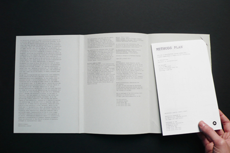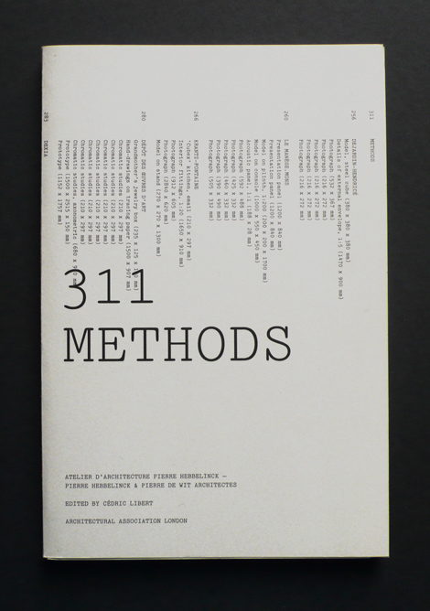 « Cette publication, réalisée à l’occasion de l’exposition « Methods » de l’Atelier d’architecture Pierre Hebbelinck, Pierre Hebbelinck & Pierre de Witt architectes à La AA de Londres, détourne les codes habituels du catalogue d’exposition pour mettre en avant le concept curatorial, à savoir, la méthodologie de l’atelier comme figure centrale plutôt qu’une architecture aboutie.