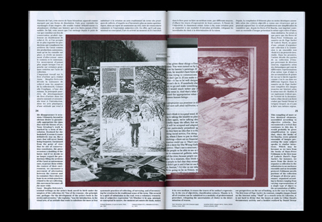 De haut en bas : Histoires d’archives pour le Cneai ; le dernier 2.0.1#3 dédié aux pratiques de l’images et s’appropriant la maquette et les images originales du coup délicieusement décalées du Science et Nature par la photographie et par l’image, Nº21 de Mai-Juin 1957 ; le Fan #1 des éditions Bat dans lesquelles ils sont impliqués graphiquement et éditorialement et qui profitent des très belles créations typographiques de Charles ; Super#11 pour une exposition de Polly Smith à la galerie Super ; le journal forcément « formalisto conceptuel » de la commande publique de la région Bourgogne à Lawrence Weiner : Au pays.