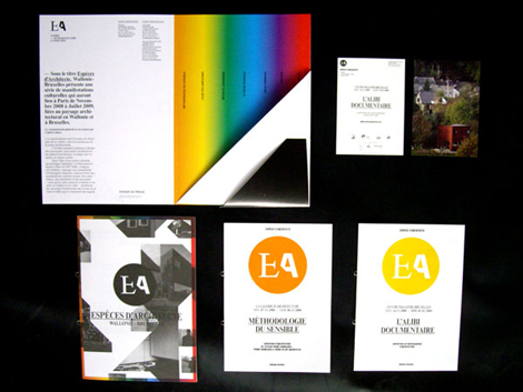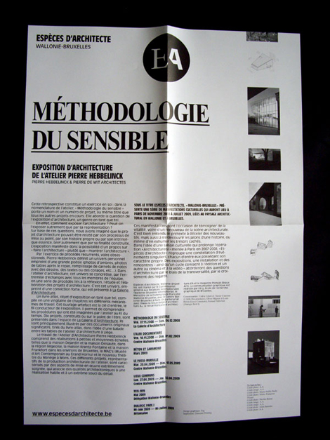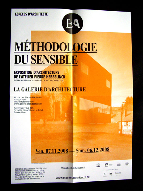 Espèces d’architecte, espèces d’espaces graphiques informatifs, mouvants et sensibles réalisés par les étudiants de l’ERG du cours de typographie et de médiation graphique animés par Renaud Huberlant pour les manifestations parisiennes défendant la création architecturale walonne.