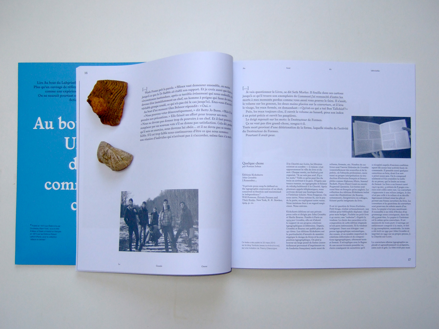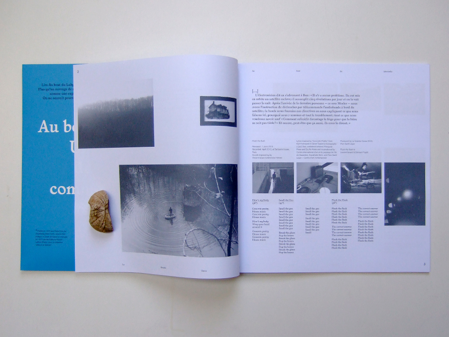 Quelques images de l’édition plurielle, entre son, mobilier et édition, issue de la résidence de recherche La grande Ourse session 2013 réunissant Céline Chazalviel (Théoricienne), Roman Seban (graphiste), Baptiste Brevart, Laurent Isnard, et Antoine Renard (plasticiens) et animée par l’équipe du Centre d’Art du Parc Saint Léger et des intervenants issus des structures partenaires.