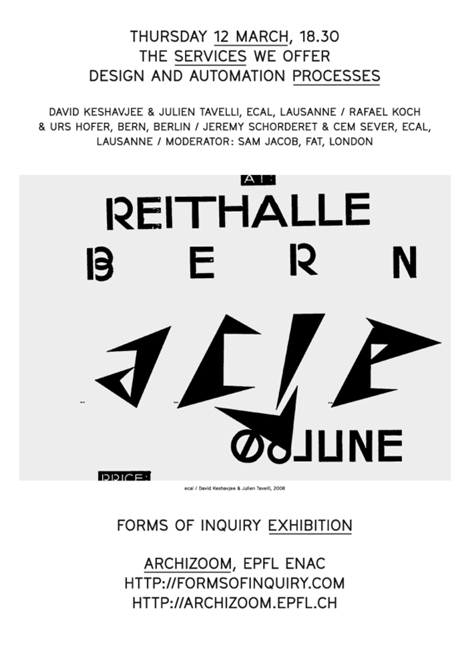 Forms of inquiry, l’exposition de ce design d’enquête critique qui reformule, côté anglo-saxon, la position déjà ancienne du graphisme dit d’auteur se poursuit sur la toile avec l’extraordinaire qualité qu’on sait. On y reparle de spéculation, d’interaction des pratiques et de la réflexion, de production de contenu, d’auto-initiation de projet, de posture plutôt que de positionnement. On s’y réfère à l’architecture, classiquement, le plus élevé des arts, et, comme le graphisme, un art déjà appliqué… On y définit ce questionnement auto-réflexif du graphisme, de ses visées, de ses moyens, de ses enjeux au travers de deux figures extérieures peut être d’autorité : d’abord, celle, littéraire du critique ou de la critique et d’autre part celle, à la fois ingénieuriale, politique et artistique de l’architecte…