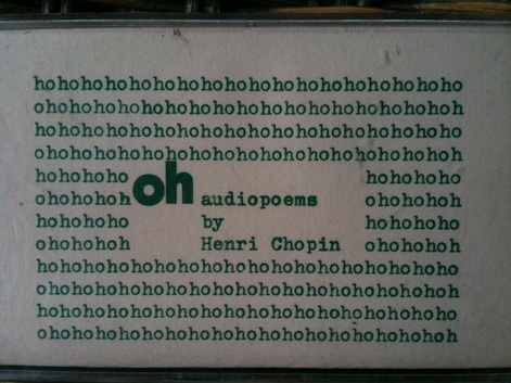 On pourrait classer Henri Chopin dans la même catégorie que Ian Hamilton Finlay: des poètes visuels, des typographes du son, des jardiniers des signes. Né en 1922, Chopin est une des figures-clés de cette nouvelle avant-garde française qui germe à la fin de la seconde guerre mondiale. La Norwich Gallery avait ainsi organisé une rétrospective de son travail en 1998, Sonic Memory revenait sur les recherches visuelles et typoétiques d’Henri Chopin (notamment ses poèmes à la machine-à -écrire).