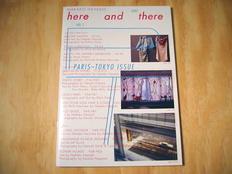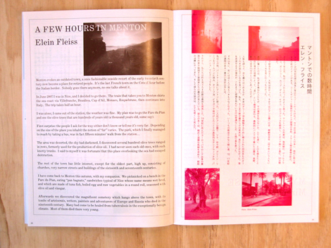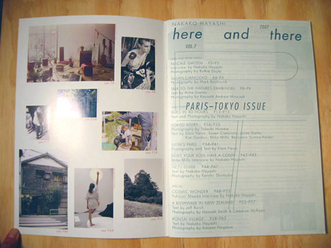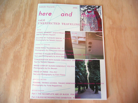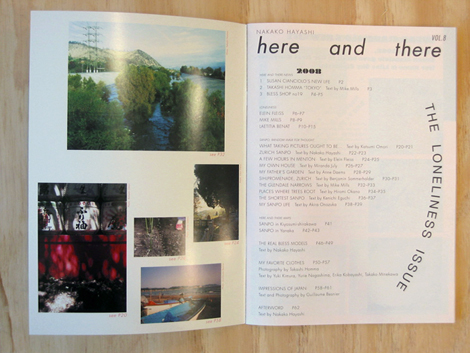Le Travail graphique de Kazunari Hattori pour la revue voyage, mode et art Here and there de Nakako Hayashi est absolument remarquable. À la fois relâché et juste, cultivant un étrange mode presque serein, contemplatif et distant de la stratégie moderniste de la superposition qui relève pourtant à priori de l’esthétique du choc. Tout flotte en douceur et étrangeté. Me reviennent alors à l’esprit ces phrases de Barthes relevées par Élodie Royer et Yoann Gourmel dans le FAN n°1 pour appuyer leur texte sur l’esthétique japonaise de l’impermance tranquille du mono no aware et qui ouvraient l’Empire des signes : « Le texte ne ‹ commente › pas les images. Les images ‹ n’illustrent › pas le texte : chacune a été seulement le départ d’une sorte de vacillement visuel, analogue peut-être à cette ‹ perte de sens › que le zen appelle un satori ».