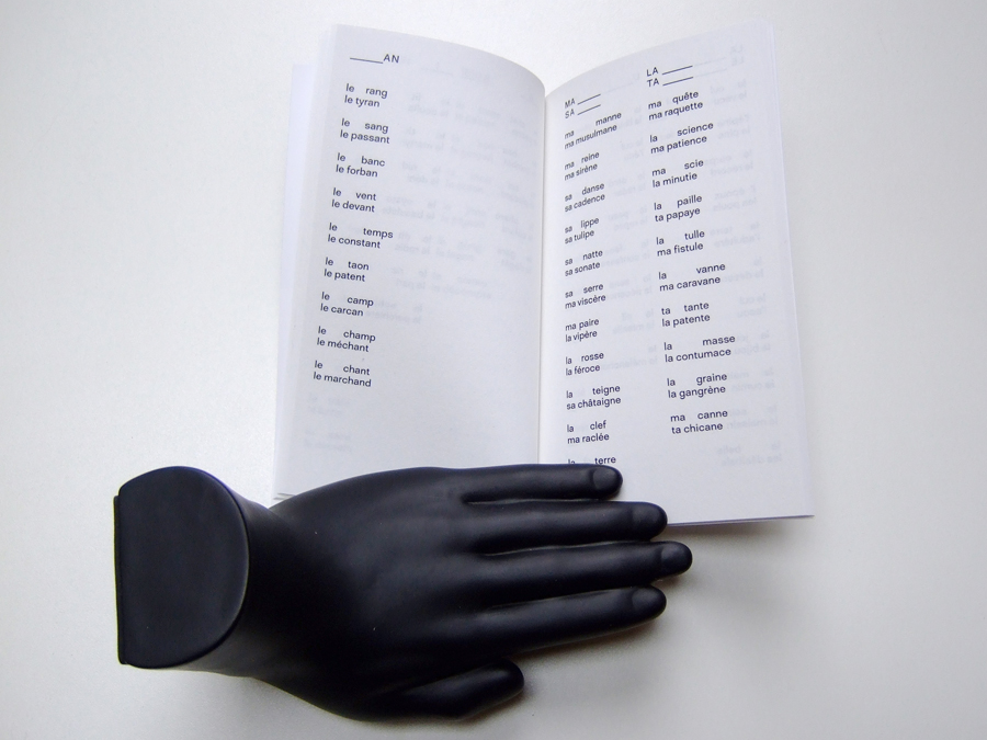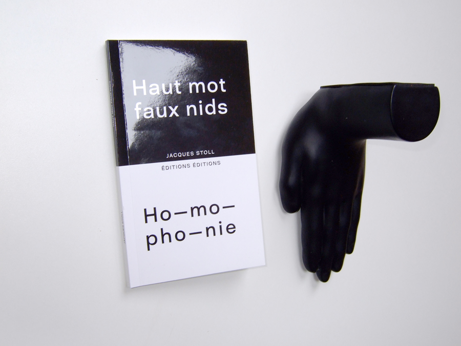 Heureusement d’une faiblesse un peu coupable peut parfois naître un bien. Dans l’espace du désaccord économique « entre graphie et son », on peut cultiver le jeu dont on sait qu’il est aussi une distance, un écart nécessaire au fonctionnement des engrenages, comme ceux de la machinerie poétique et drolatique que les récentes et tautologiques éditions éditions proposent avec leur dernier exercice sémiotique en forme de calembour typographique Haut mot faux nids.