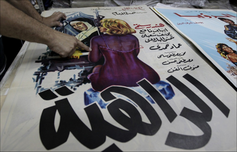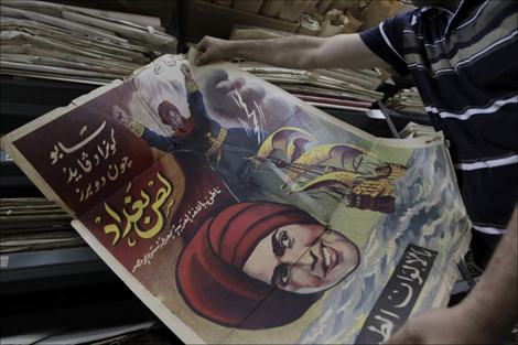 Abboudi Abou Jaoude collectionne au Liban des affiches lithographiques du cinéma du monde arabe du milieu du siècle dernier, entre globalisation culturelle, sensibilité populaire et très masculine, visions plus ou moins occidentales d’un orient lascif et magique, et résurgence de tentations iconodules…