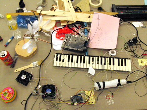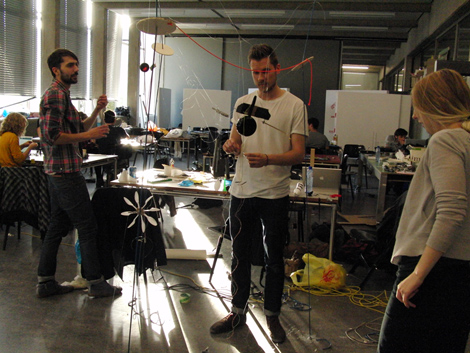 Inventing the wheel est le nom d’un workshop éclair mené en 5 jours, récemment, par Luna Maurer, Joel Wouters et Ubi de Feo à la Rietveld Academie. Une façon d’aborder, en groupe, grâce à la plateforme open source Arduino, l’interaction en temps réel et une forme de réalité augmentée qui échappe aux démonstrations explicitement numériques.