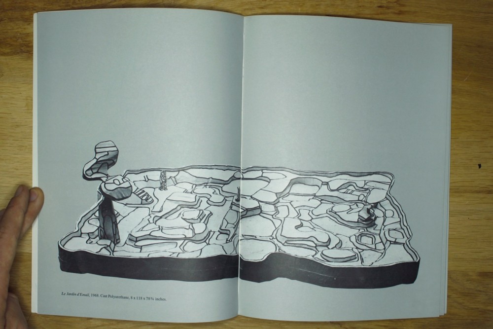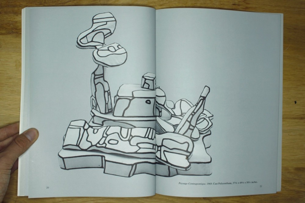 J’ai tout d’abord songĂ© aux deux termes de mont-joies et de cairns qui l’un et l’autre dĂ©signent les monticules de pierres Ă©levĂ©s en quelque lieu —une croisĂ©e de chemins— pour servir de repère aux voyageurs ou comme monuments commĂ©moratifs. C’est lĂ  en effet un des aspects que peuvent prĂ©senter ces constructions et sous lequel il m’est arrivĂ© de les regarder. Mais outre que ces deux termes sont peu connus et risquent de demeurer Ă  la plupart inintelligibles, ils ne rendent pas compte du caractère (ou disons peut-ĂŞtre plutĂ´t allusif) de ces dispositifs ou amoncellements, qui sont en effet Ă©troitement liĂ©s Ă  des Ă©vocations d’objets usuels, de meubles, de figures, sites ou paysages. Ces divers thèmes s’y trouvent dĂ©libĂ©rĂ©ment traitĂ©s dans la forme adoptĂ©e antĂ©rieurement pour toutes mes peintures de L’Hourloupe: celle d’une Ă©criture mĂ©andreuse ininterrompue et rĂ©solument uniforme (ramenant tous plans au frontal, ne tenant nul compte du registre propre de l’objet dĂ©crit, de sa dimension, de son Ă©loignement ou sa proximitĂ©) Ă  la faveur de quoi s’abolissent toutes les particularisations, toutes les catĂ©gories (je veux dire tous les classements usuellement adoptĂ©s par notre pensĂ©e et introduisant distinction entre une notion et une autre: entre la notion de chaise, par exemple, et celle d’arbre, celle de personnage, de nuage, de sol, de paysage, ou n’importe quelle que soit) de manière que cette Ă©criture bien constamment uniforme indiffĂ©remment appliquĂ©e Ă  toutes les choses (et, il faut le souligner fortement pas seulement les choses qui s’offrent Ă  nos yeux mais aussi bien celles qui, dĂ©nuĂ©es de tout fondement physique, sont seulement les productions de notre pensĂ©e, de notre imagination ou de notre caprice; les unes et les autres mĂŞlĂ©es sans distinction) tend Ă  tout rĂ©duire au mĂŞme dĂ©nominateur et Ă  nous restituer un univers continu, indiffĂ©renciĂ©: tend Ă  opĂ©rer une espèce de liquĂ©faction des catĂ©gories dont notre pensĂ©e fait habituellement usage dans le dĂ©chiffrement (mieux vaudrait. dire le chiffrement) des faits et spectacles du monde. Ă€ la faveur de quoi la circulation de l’esprit d’un objet Ă  un autre, d’une catĂ©gorie a une autre, soit libĂ©rĂ©e, et grandement accrue sa mobilitĂ©.