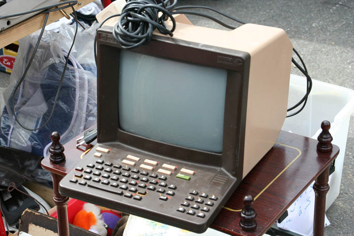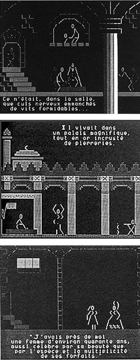 Je passe rapidement sur les contraintes techniques imposĂ©es par le vidĂ©otex (vous en avez un aperçu ci-dessus), technique mise au point par des ingĂ©nieurs de France TĂ©lĂ©com et qui fera dire Ă Stephen Belfond qu’il s’agissait sans doute d’une certaine perfidie… pour gĂ©nĂ©rer des pages tĂ©lĂ©matiques il faut effectivement un matĂ©riel dĂ©diĂ©, sorte de laboratoire du geek version un-point-zĂ©ro.