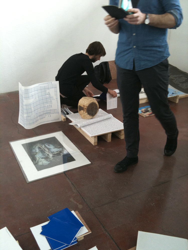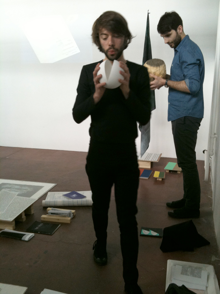Alexandru Balgiu et Fabrice Mabime, performance-lecture de l’exposition de la section graphisme de l’Ensba Lyon, 24 et 25 mai 2014, Chaumont