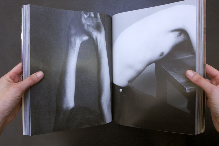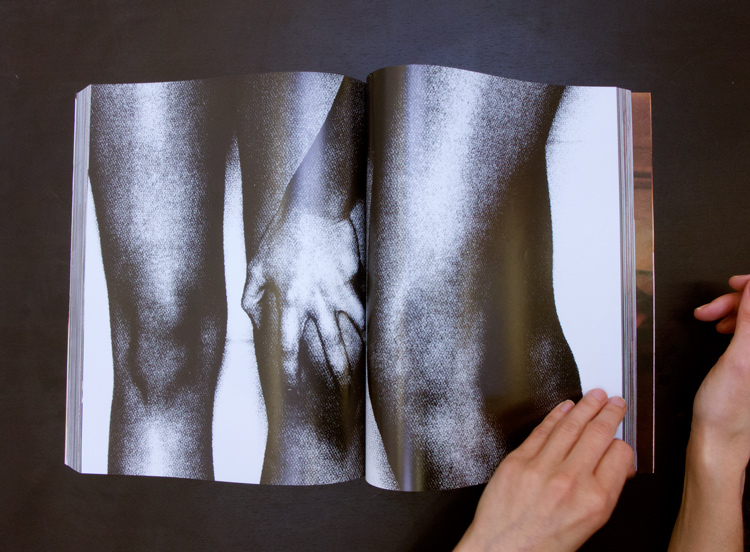Des recherches comme un Atlas d’images cadencé par le rythme des pages d’un livre, dessiné par Julie Peters, au format 22 x 29 cm, en quadrichromie où se rejouent les fragments empruntés à diverses sources, pas si contradictoires entre elles d’ailleurs. Magazines de mode, revues de pornographie, chic photographies; Elliman «dépayse» des morceaux de corps saisis ici ou là.