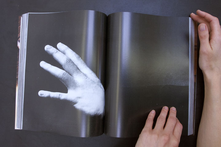 Le saisir c’est devenir partie prenante des scènes tronquées et recadrées qui s’y déroulent. On le devine, les mains du lecteur-présentateur (dont on connaît, par exemple, l’importance pour Thierry Chancogne!) deviennent actrices; les pouces, les indexs, les arcades palmaires épousent les détails d’un genou, d’une joue, définissant une chanson de gestes dont se réclame Paul Elliman: