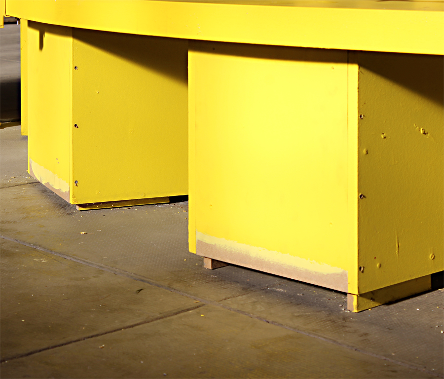 Ă€ l’intĂ©rieur du module de Didier Faustino, un ensemble de planches se trouvant sous la base de la structure ont Ă©tĂ© dĂ©solidarisĂ©es, basculĂ©es Ă l’envers, puis repositionnĂ©es. RĂ©vĂ©lant ainsi des parties non-peintes de la structure (On parlerait de «dĂ©-peindre» l’objet), ce geste constitue paradoxalement une sĂ©rie de peintures de petit format Ă l’intĂ©rieur mĂŞme de l’œuvre de Faustino, pour un temps (avant d’être repositionnĂ©es comme Ă l’origine et disparaĂ®tre). DĂ©fraĂ®chi, le module de Didier Faustino, dès lors plutĂ´t que de s’en extraire, s’intègre Ă son environnement.