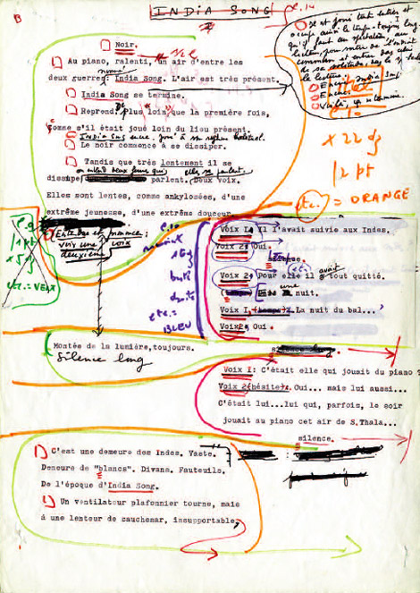 _ Première page d’India Song, dactylographiée et annotée par Marguerite Duras