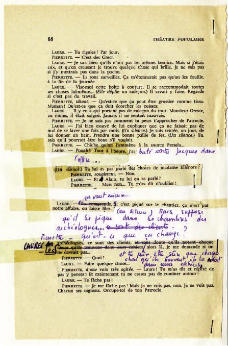Iphigénie Hôtel, version intégrale publiée dans la revue Théâtre populaire annotée par Michel Vinaver pour une adaptation théâtrale