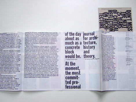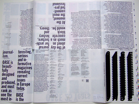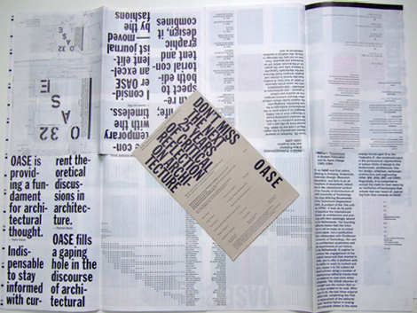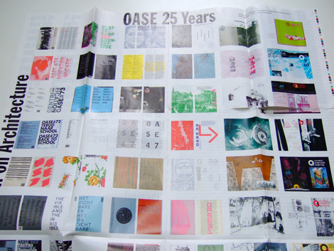 Il y a plusieurs moyens d’envisager cet entre dans le graphisme. On peut par exemple inventer des formats nouveaux, des formats de l’entre, entre édition et affiche comme l’ont fait Karel Martens et le Werkplaats Typografie, pour célébrer les 25 ans de la revue Oase (illustrations 5 à 10).