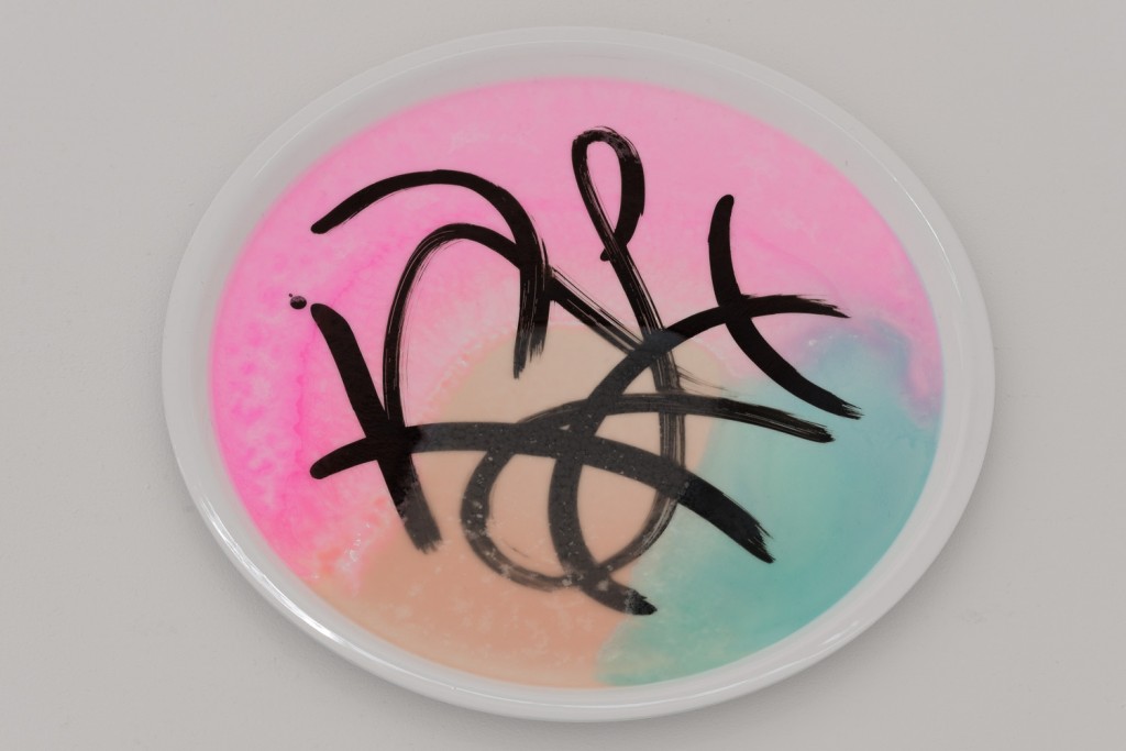 Ces motifs se dĂ©tachent sur les fonds colorĂ©s des plateaux, Ă  la fois acqueux et vifs, d’un Ă©trange fluo dĂ©fraĂ®chi. Comme les images qu’il affectionne, les couleurs de ces peintures ont aussi Ă©tĂ© trouvĂ©es par l’artiste : il s’agit du bleu d’une solution dentaire, du mauve d’un adoucissant pour linge, du jaune d’un nettoyant pour sol, tout un ensemble de produits d’entretiens trouvĂ©s sur place. Quant aux plateaux eux-mĂŞmes, ils ont Ă©tĂ© rĂ©alisĂ©s avec le garagiste de Delme, qui leur a donnĂ© ce blanc laquĂ© comme une carrosserie. Ce sont les couleurs du monde qui nous entoure : celles de la vie simple, quotidienne, du lieu que l’artiste vient investir le temps d’un projet. Ou, pour reprendre ses propres termes Ă  propos de son exposition Ă  la Zoo Galerie de Nantes, « c’est le monde qui transpire Â».
